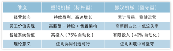 三是分配逻辑:劳动价值论强调劳动分配核心地位;复合价值论主张按贡献分配,实现多方利益协同增长。实质上复合价值论并非否定劳动价值论,而是在当代经济条件下,高度认同劳动者是价值创造核心力量,重钢机械“倒置架构”、保障员工权益等实践,正是对劳动者主体地位的尊重;顺应知识经济与数字经济发展,将管理劳动、技术劳动、服务劳动等新型劳动形态纳入分析框架,丰富价值创造主体内涵。